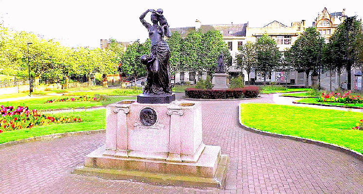 The square was also a suitable setting for the statues of the Coats brothers, Queen Victoria, and Sir William Dunn, freshwater drinking fountain.Â